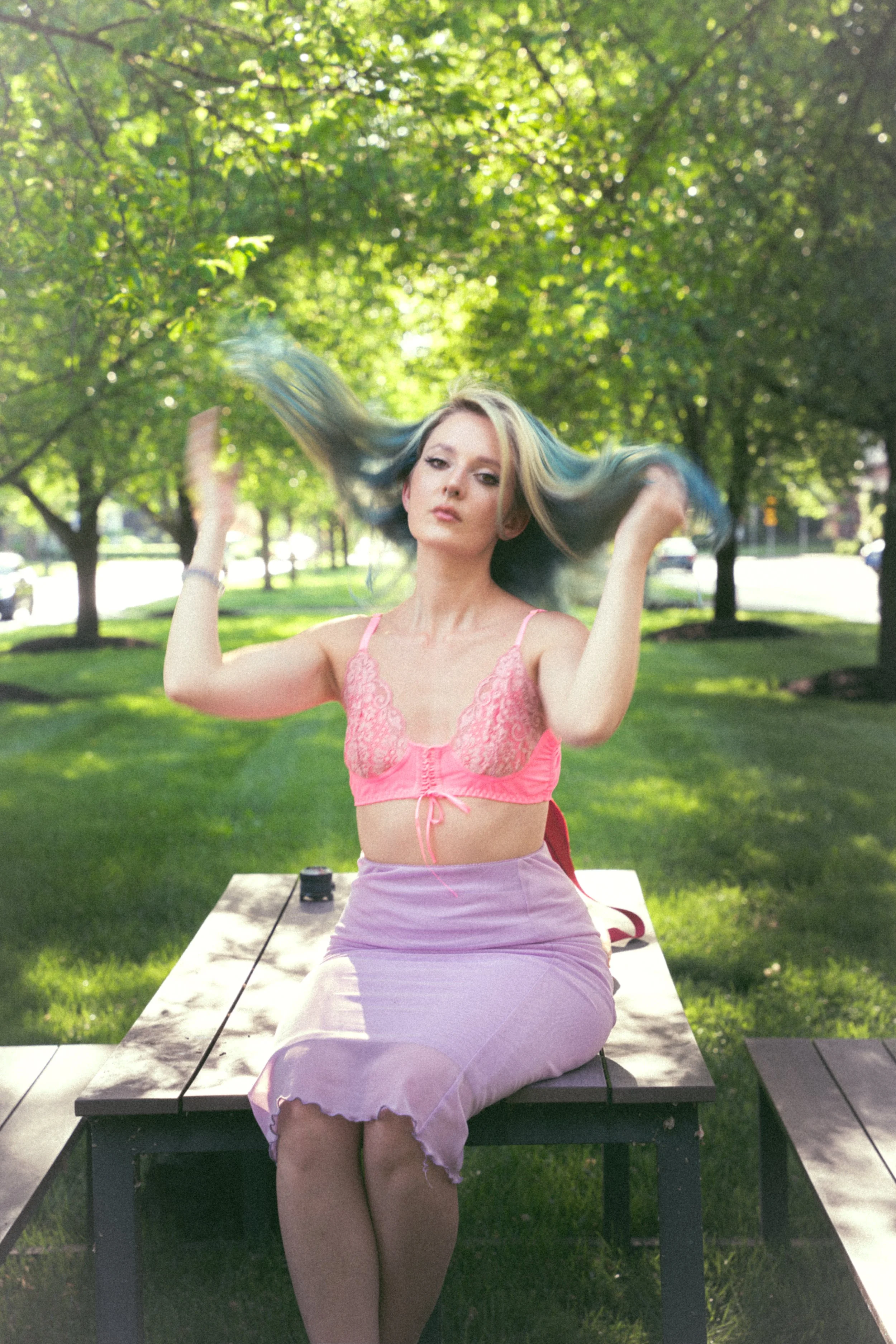 This was an experiment in creating some images that matched the vibez of walking through the park and enjoying a cold treat in the summer. I wanted to capture the colors, the feeling, and the look of summer memories with an added twist of pop and vibrancy provide by the style Sarah brought to the shoot